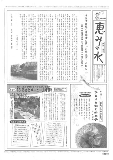 うおすけは、「恵みの水かわら版」という名の新聞を1年に4回発行しています。