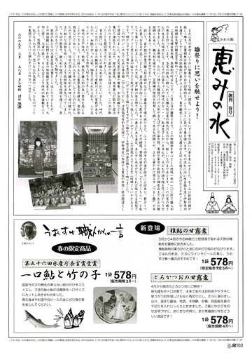 うおすけは、「恵みの水かわら版」という名の新聞を1年に4回発行しています。