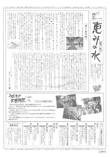 うおすけは、「恵みの水かわら版」という名の新聞を1年に4回発行しています。