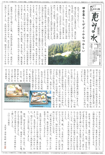 うおすけは、「恵みの水かわら版」という名の新聞を1年に4回発行しています。
