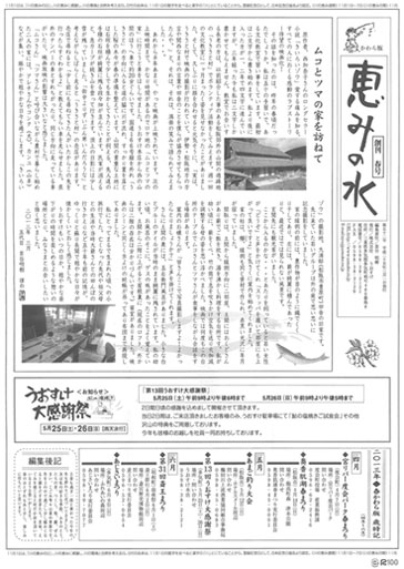 うおすけは、「恵みの水かわら版」という名の新聞を1年に4回発行しています。