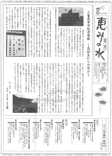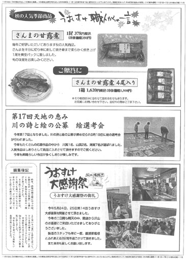 うおすけは、「恵みの水かわら版」という名の新聞を1年に4回発行しています。