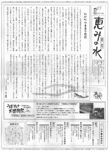 うおすけは、「恵みの水かわら版」という名の新聞を1年に4回発行しています。
