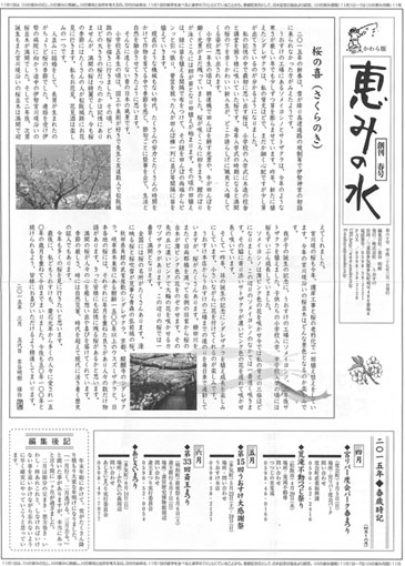 うおすけは、「恵みの水かわら版」という名の新聞を1年に4回発行しています。