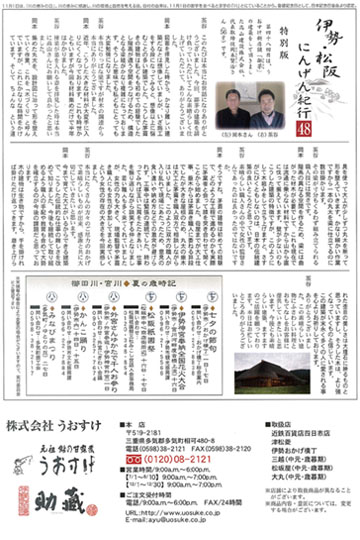 うおすけは、「恵みの水かわら版」という名の新聞を1年に4回発行しています。