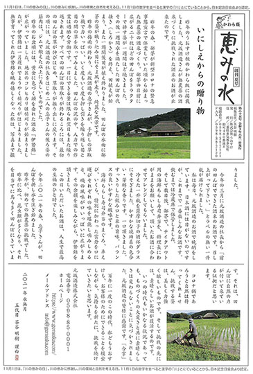 うおすけは、「恵みの水かわら版」という名の新聞を1年に4回発行しています。
