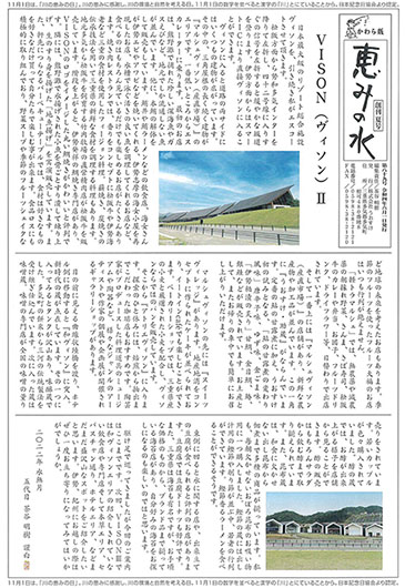 うおすけは、「恵みの水かわら版」という名の新聞を1年に4回発行しています。